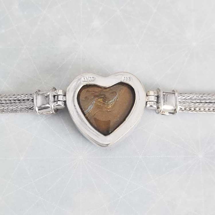 Sterling Silver Tiger Iron Heart Silver Bracelet with Woven Chainpv601ti_whole_rulerpv601ti_back_close