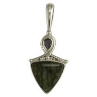 Labradorite Pendant with Silver Leaves, Topaz and Tanzanite