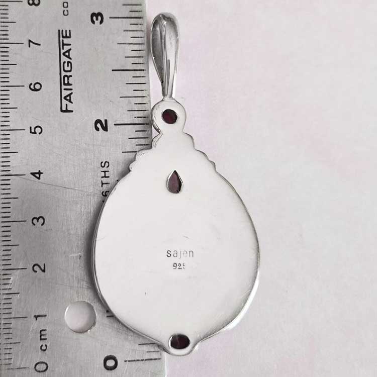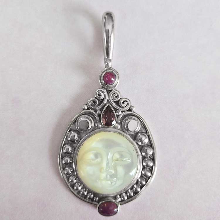 Sterling Silver Mother of Pearl Goddess Pendant with Ruby, Sapphire, and White Topaz