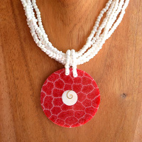 Mother of Pearl Mermaid Pendant with Rhodocrosite, Garnet, and Pink Shell