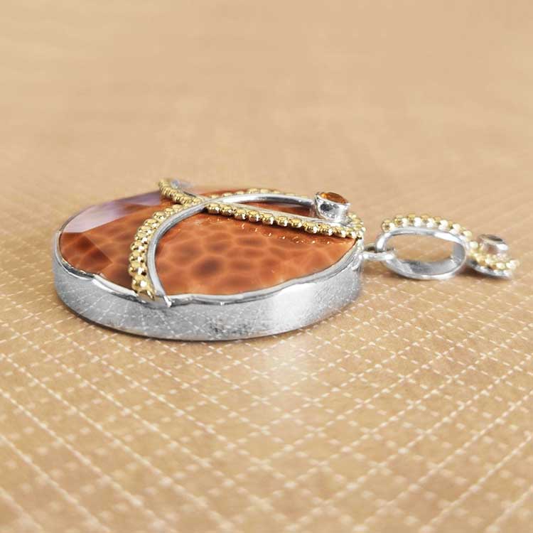 Sterling Silver and 22K Gold Vermeil Faceted Fire Agate Pendant with Citrine and Mexican Fire Opalcj45_sidecj45_back_ruler