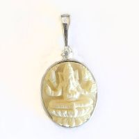 This pendant features a 10x20mm hand carved bovine cattle bone Mudra! This carving is bezel set in 925 Sterling Silver with a simple single bale. Designed by Marianna and Richard and handmade by Balinese Artisans this pendant is 1 1/2" long.