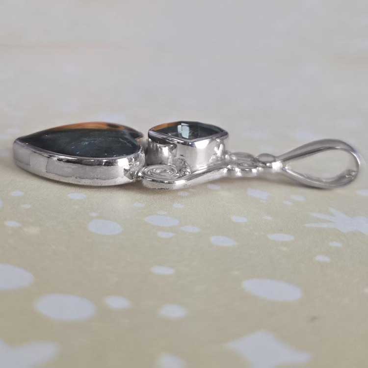 Sterling Silver Labradorite Heart and Light Green Quartz Silver Pendant