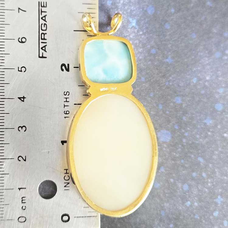 18K GOLD Larimar and Opalized Window Druzy Pendantsw409_quartersw409_sidesw409_back_ruler