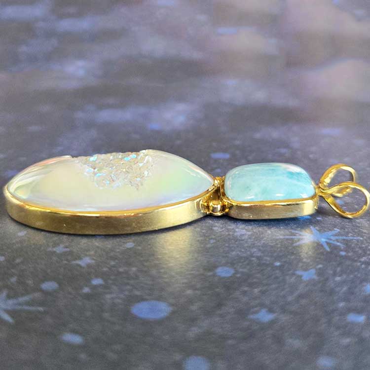18K GOLD Larimar and Opalized Window Druzy Pendant SW409G