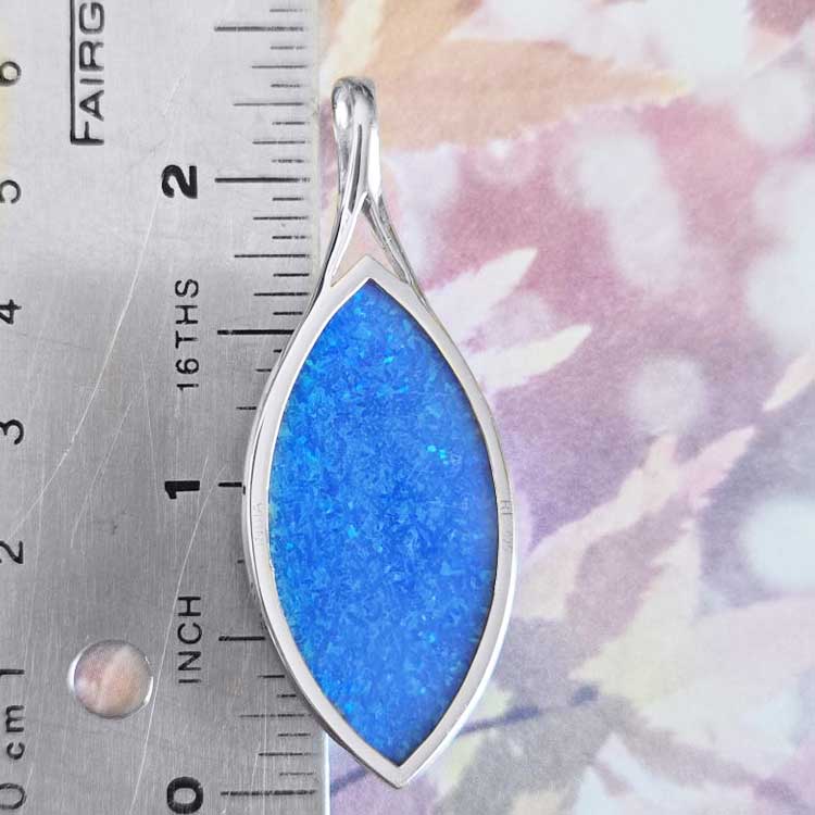 One of a Kind Pacific Blue Created Opal Backed Quartz Marquis Pendantns49_sidens49_back_ruler