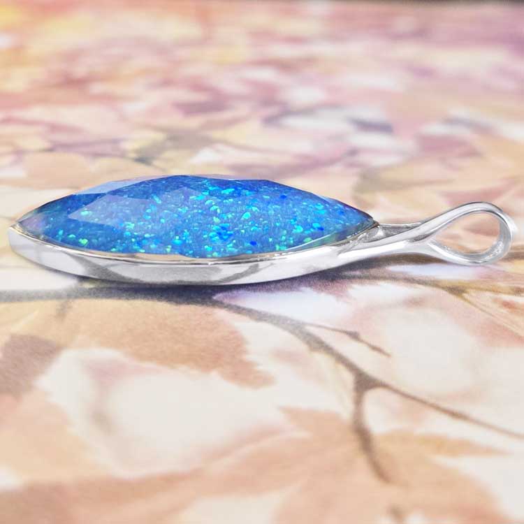 One of a Kind Pacific Blue Created Opal Backed Quartz Marquis Pendant