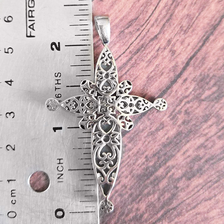 One of a Kind Sterling Silver Black Titanium Backed Quartz Cross Pendantns13b_sidens13b_back_ruler