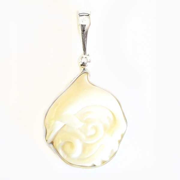 Dolphins are known to symbolize help, guidance and teamwork as well as psychic ability and transformations!  This pendant is comprised of a fun hand carved bovine cattle bone depicting a dolphin jumping curling waves. This carving is 18x18mm and has been bezel set in 925 silver.  Designed by Marianna and Richard and handmade by Balinese Artisans this pendant is 1 1/4" long.