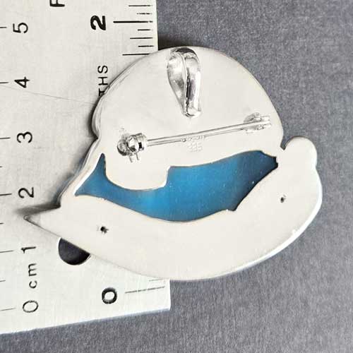 Sterling Silver Blue Fiber Optic Dolphin Pin Pendant with Paua Shellne999_sidene999_back_ruler