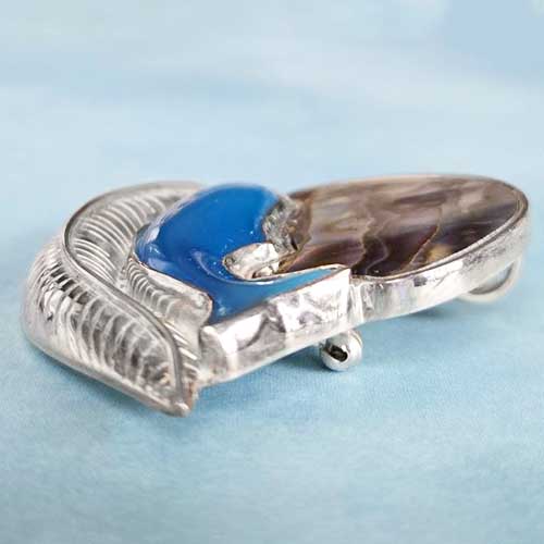 Sterling Silver Blue Fiber Optic Dolphin Pin Pendant with Paua Shell