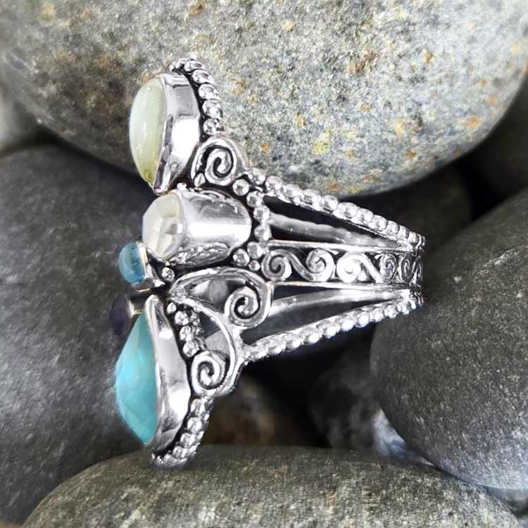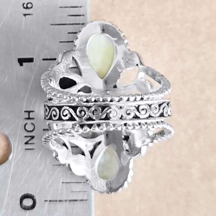 One of a Kind Sterling Silver Mother of Parl Backed Aqua Blue Quartz Locket Ring Size 7